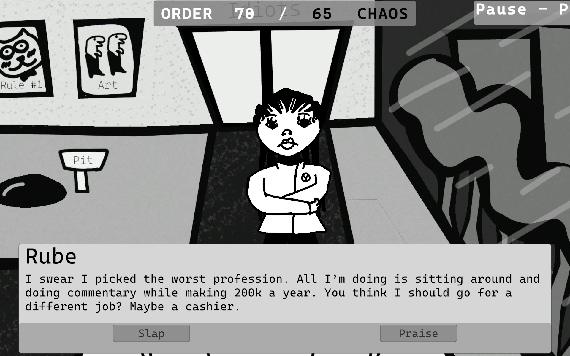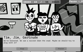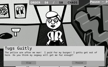 To do this, expect hordes of nutjobs to come to your doors, hoping to get their crazies sorted out. When they tell you what they've got going on, prepare to smack them around or praise them, and see the consequences in real-time. Remember, our dearest slapper: The fate of this fractured world is in your affirming and smacked-red hands.
